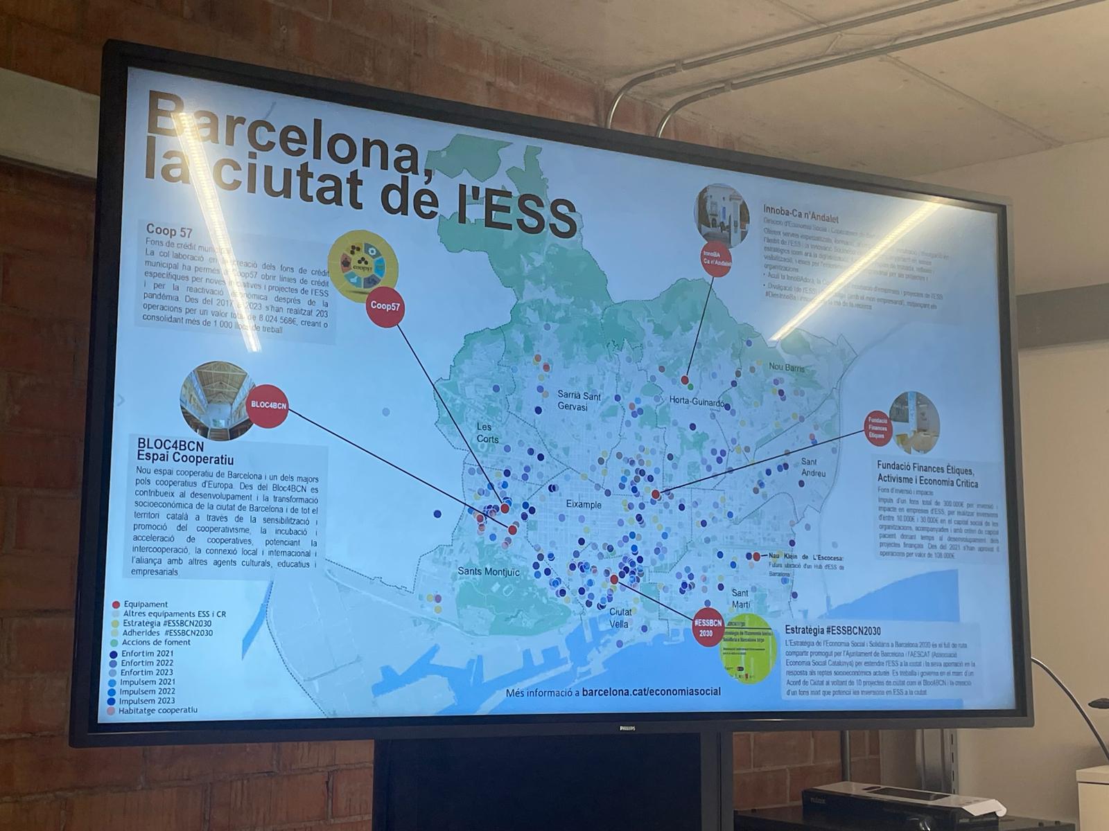 directrice des services ESS de l’Ajuntament de Barcelone dans les locaux de Bloc4BCN.